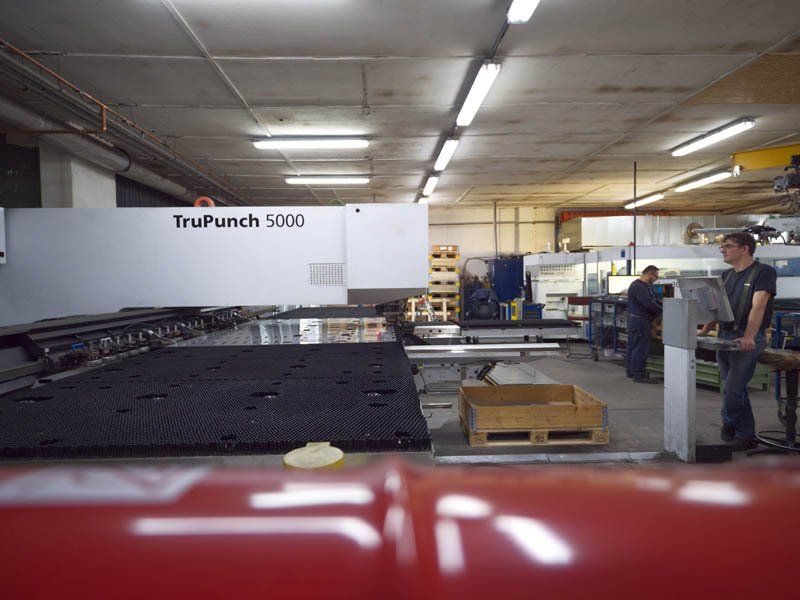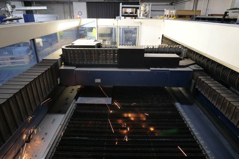Umformen: Laserschneiden (Aluminium bis 8 mm, Edelstahl bis 12 mm, Schwarzblech bis 20 mm), Stanzen (Aluminium, Edelstahl, Schwarzblech bis 4 mm), Abkanten (Edelstahl, Schwarzblech bis 6 mm auf 3 m Länge / 5-Achsen- und 7-Achsen-Anlage)